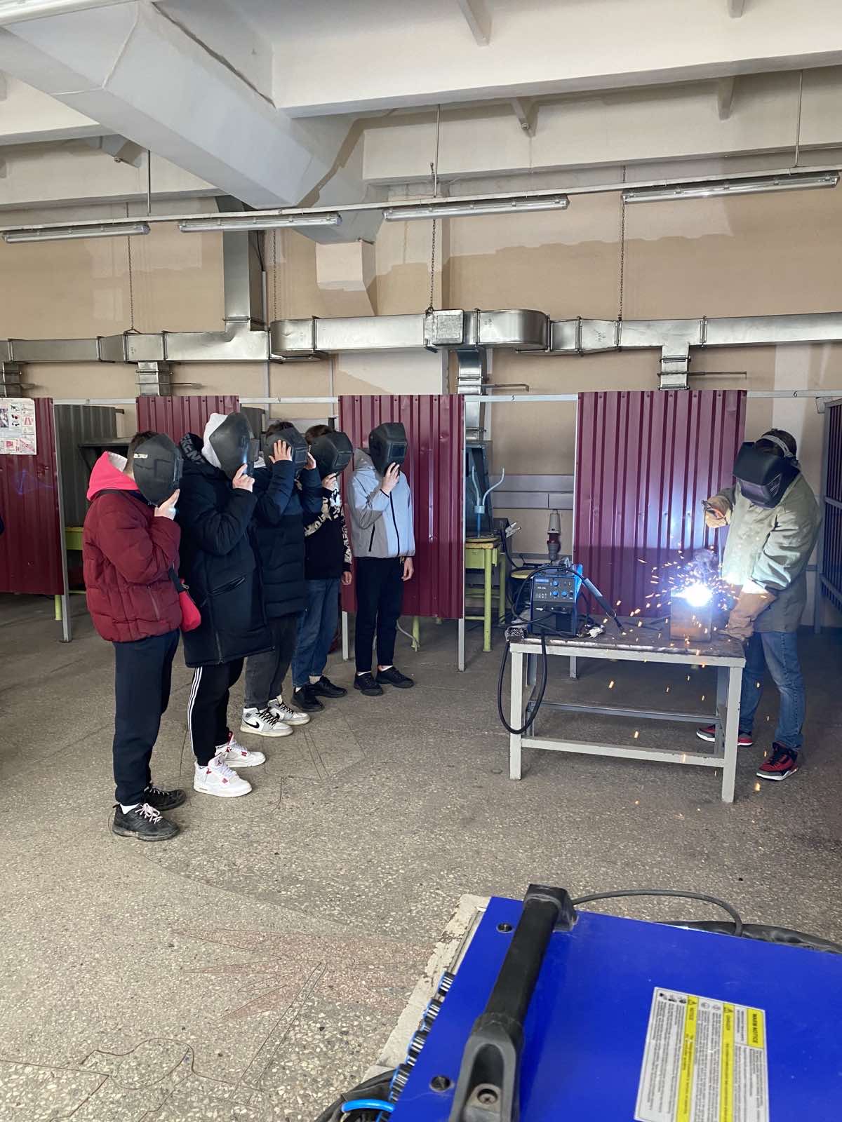 Также ребятам предоставилась прекрасная возможность побывать в мастерских лицея, где они примерили на себя профессию облицовщика-плиточника, каменщика, сварщика и плотника.