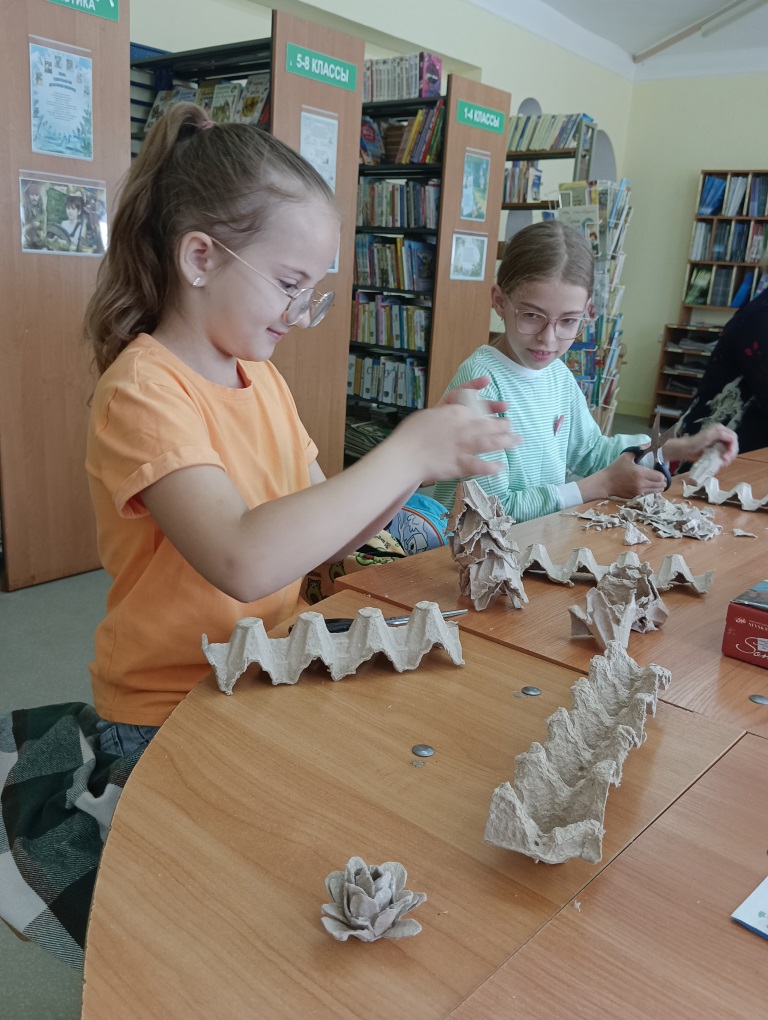 18 июня состоялся мастер-класс «Цветы из яичных лотков».