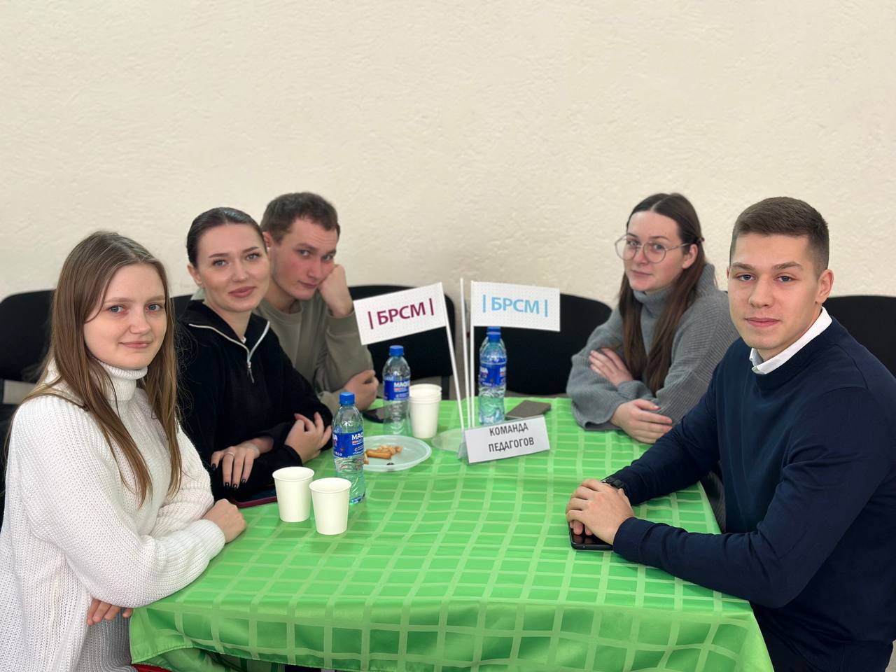 13 декабря в актовом зале собрались молодые эрудированные ребята БРСМ для участия в «Большой интеллектуально-развлекательной молодежной игре»! Мероприятие объединило команды учащихся 9-11 классов и команду педагогов, состоящую из молодых специалистов, директора школы Максима Комарова и первого секретаря Ленинского районного комитета ОО БРСМ Дании Васильева.
