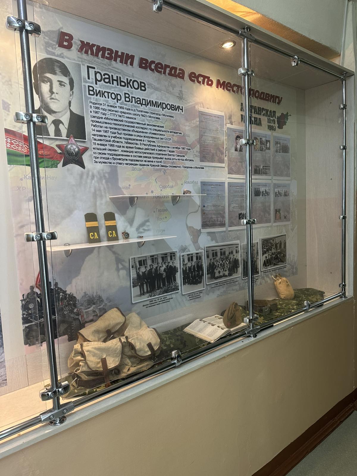 Виктор Граньков — имя, которое навсегда вписано в историю учреждения. Он погиб при исполнении интернационального долга в Республике Афганистан в 1988 году, проявив мужество и героизм. Создание уголка памяти призвано сохранить для будущих поколений историю простого парня, который ценой собственной жизни доказал, что подвиг не знает времени.