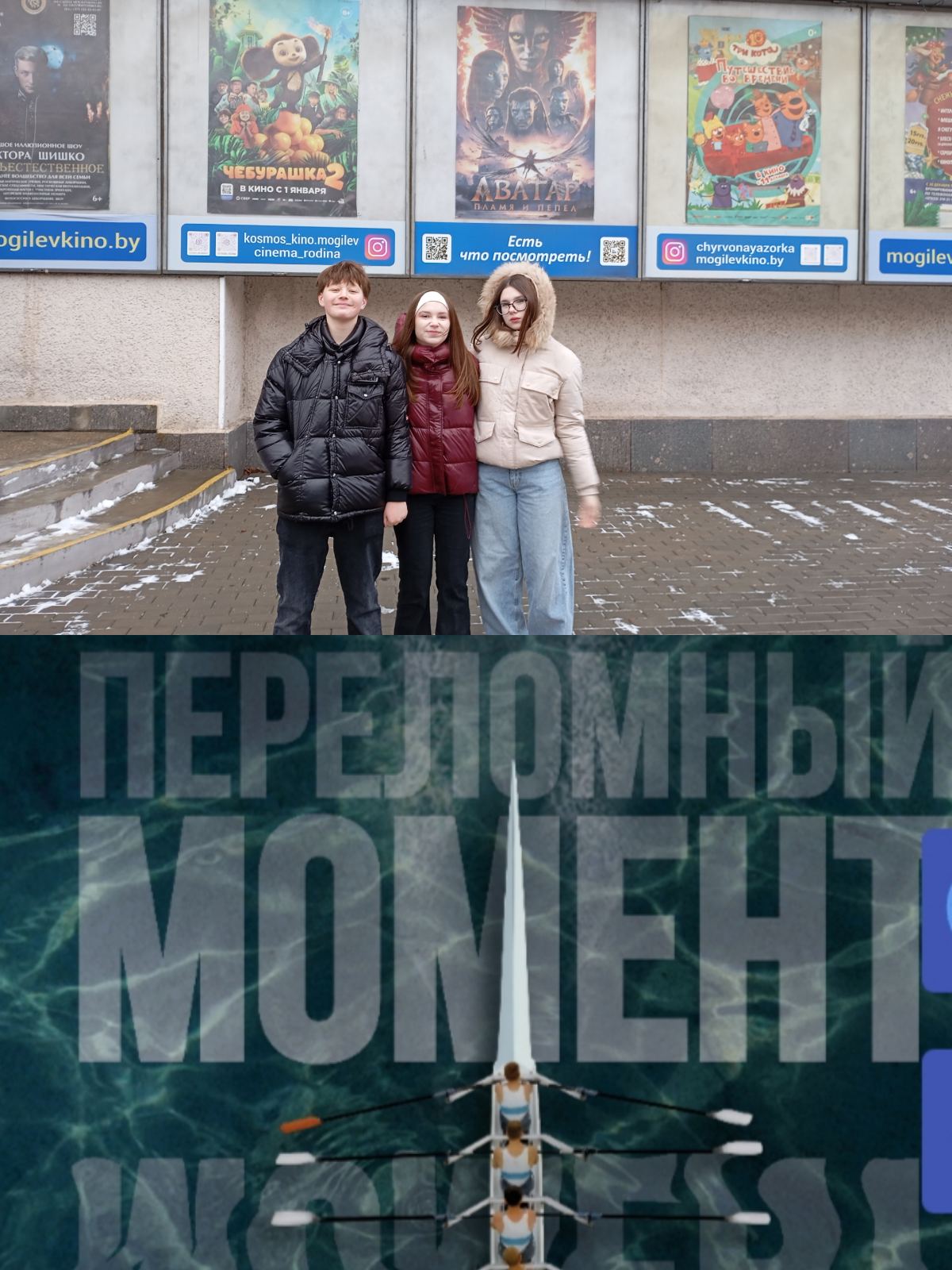 В рамках каникул 26 декабря учащиеся 8″Б» класса посетили кинотеатр «Чырвоная зорка» и посмотрели киноленту «Переломный момент», снятую на студии «Беларусьфильм».