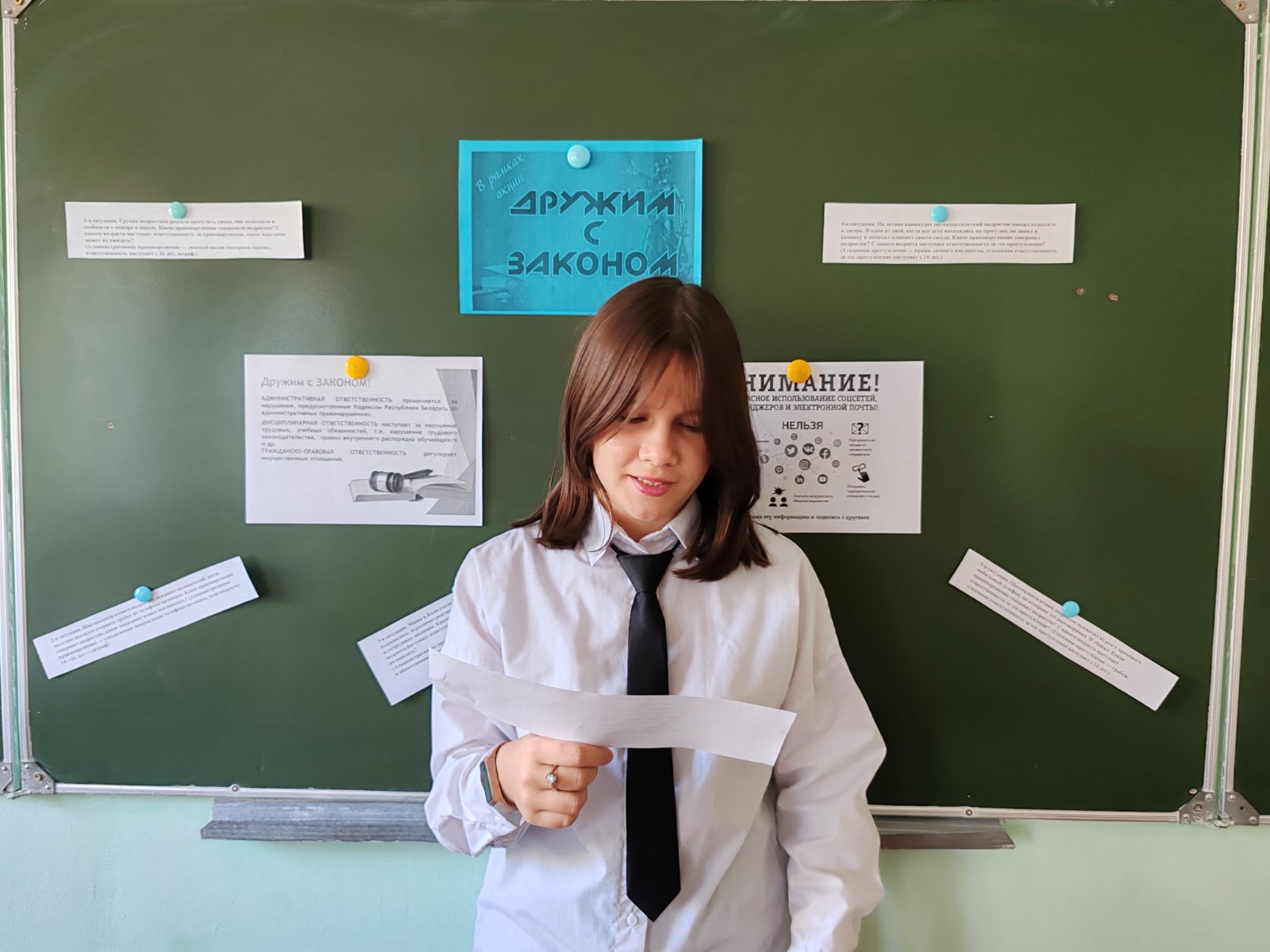 В рамках недели правовых знаний в 6 «В» классе прошло мероприятие «Дружим с законом» ⚖️ Учащиеся познакомились с основными законами и видами ответственности за их нарушение 👩⚖️ Вместе с классным рукодителем дети обсудили ситуации из жизни, где нужно было определить нарушение и возможные последствия 👍 Ребята поняли, что знание законов помогает защищать права, принимать правильные решения и быть ответственными гражданами своей страны🇧🇾