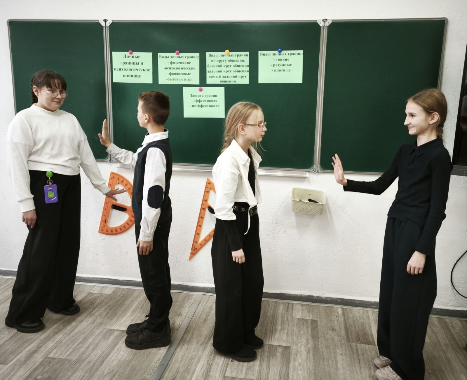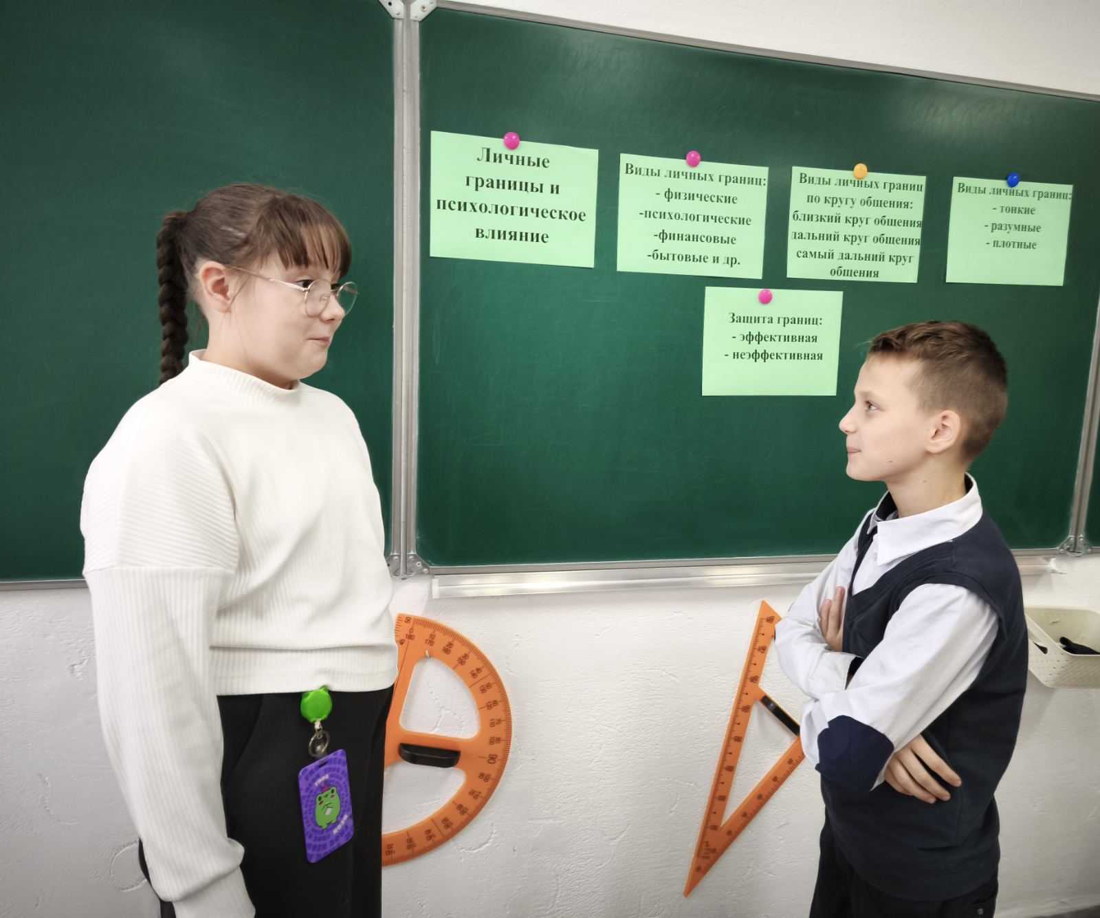 В рамках программы «Моё психологическое благополучие» в 5 «Г » классе прошёл классный час «Личные границы и психологическое влияние». В ходе мероприятия ребята учились чувствовать свои личные границы, распознавать их, отстаивать, а также уважать и принимать личные границы других. С учащимися были проведены игры, обсуждались типичные ситуации нарушения границ. Час общения способствовал осознанию себя, важности умения говорить «нет».