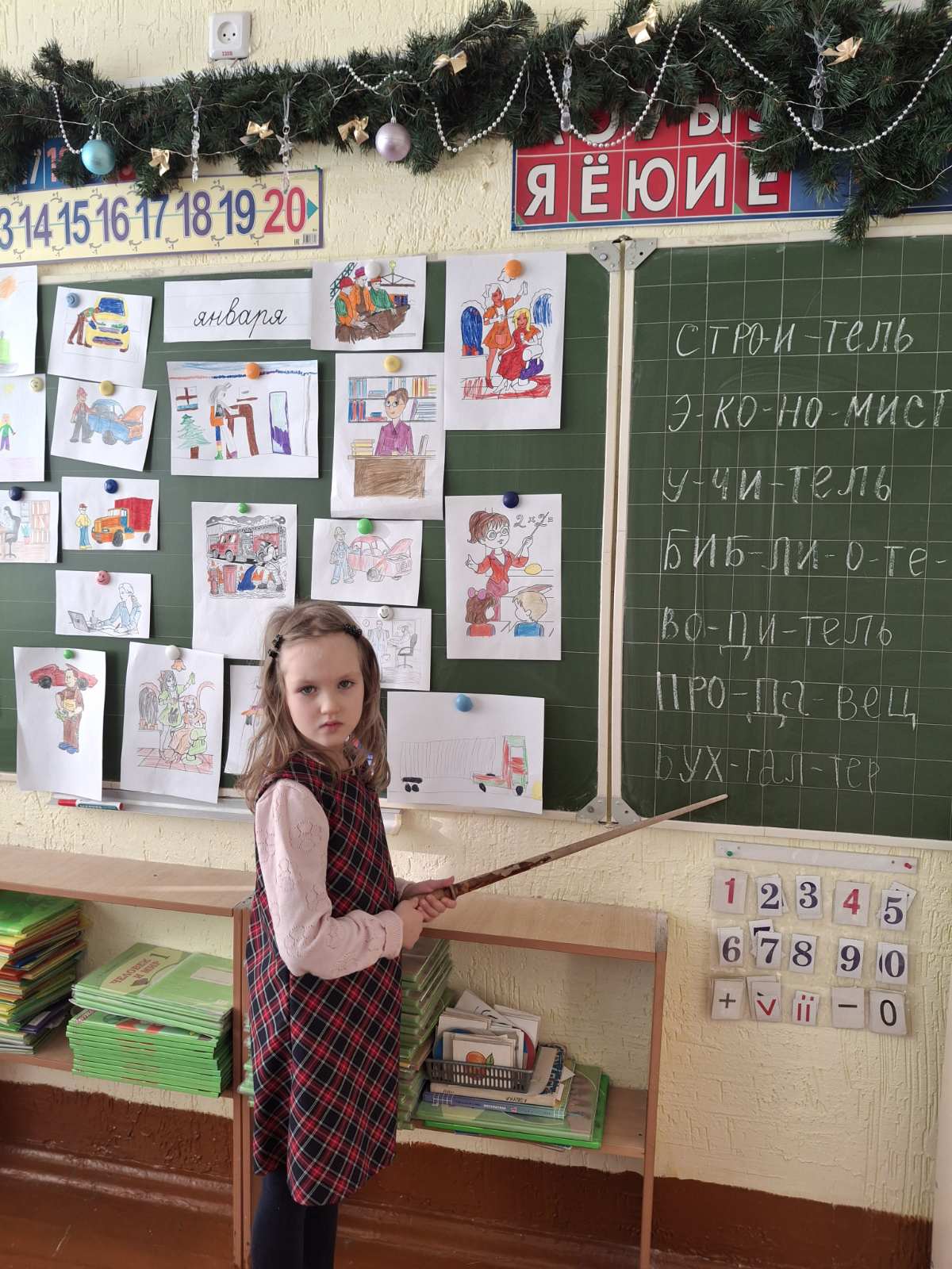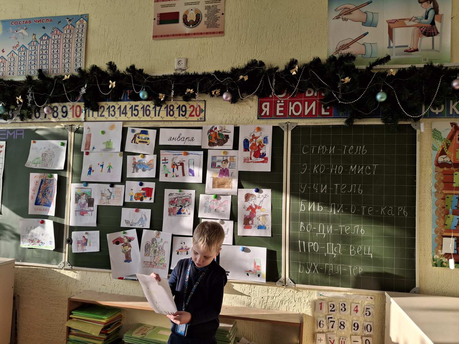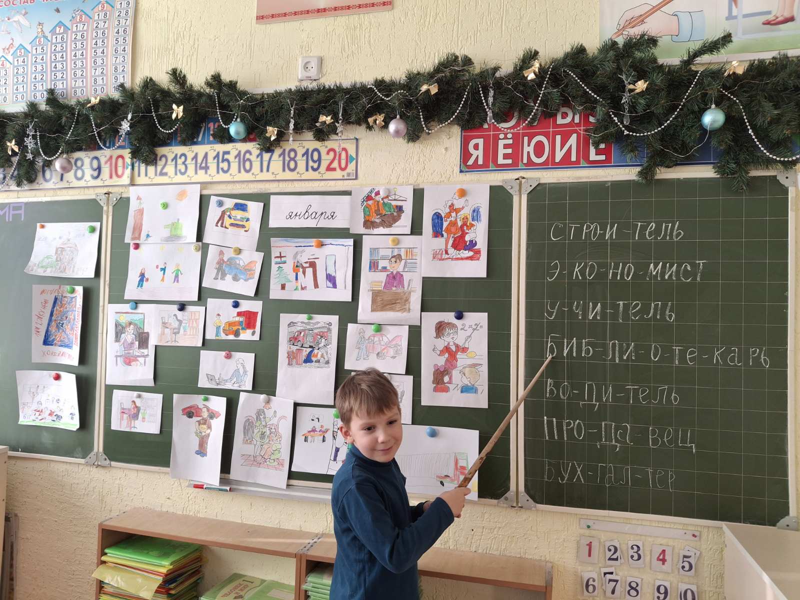 В рамках шестого школьного дня в 1 » Б» классе прошло мероприятие: выставка рисунков » Профессии моих родителей»