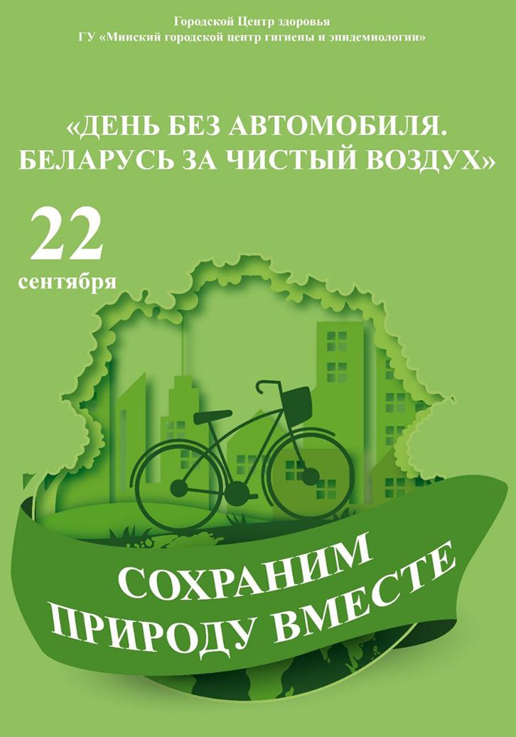 22 сентября 2025 года Министерством природных ресурсов и охраны окружающей среды планируется проведение республиканской акции «День без автомобиля», включающий ряд мероприятий во всех регионах Республики Беларусь.