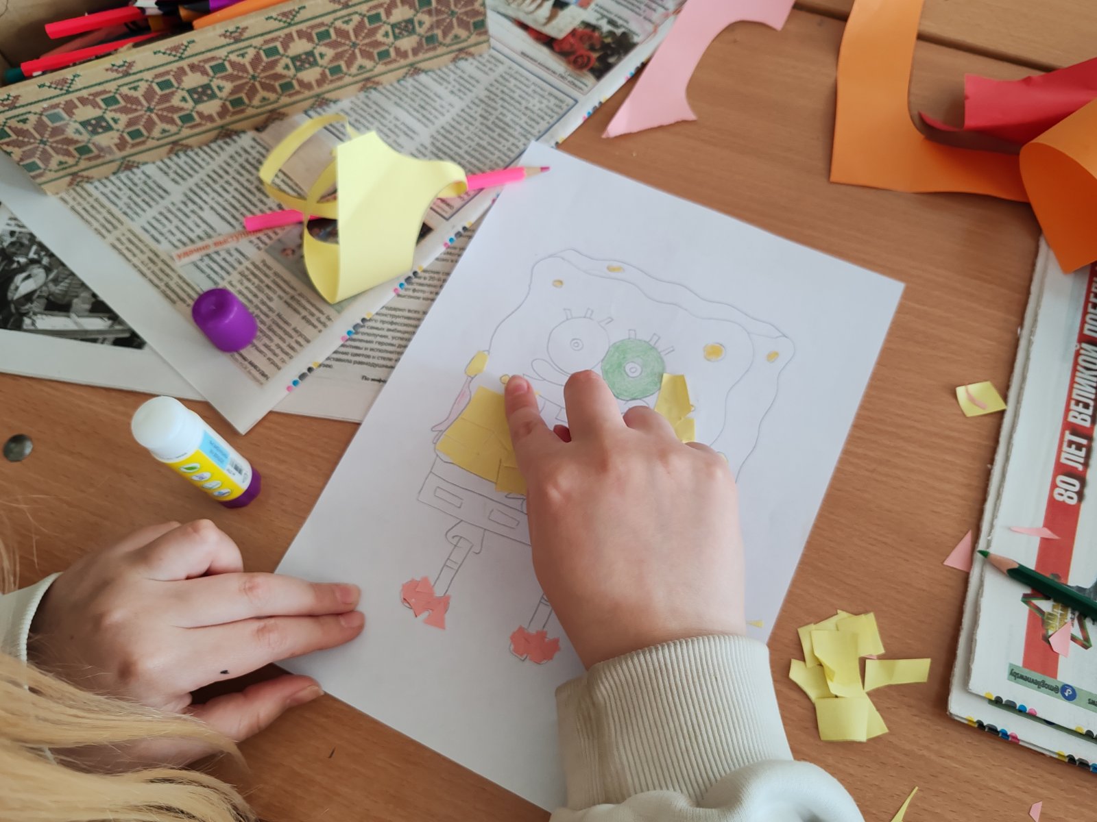 🎨✨ В лагере «Патриот» состоялось удивительное творческое мероприятие! Дети погрузились в мир фантазии и креативности, создавая яркие картины и оригинальные мозаики из газет и цветной бумаги📰✂️