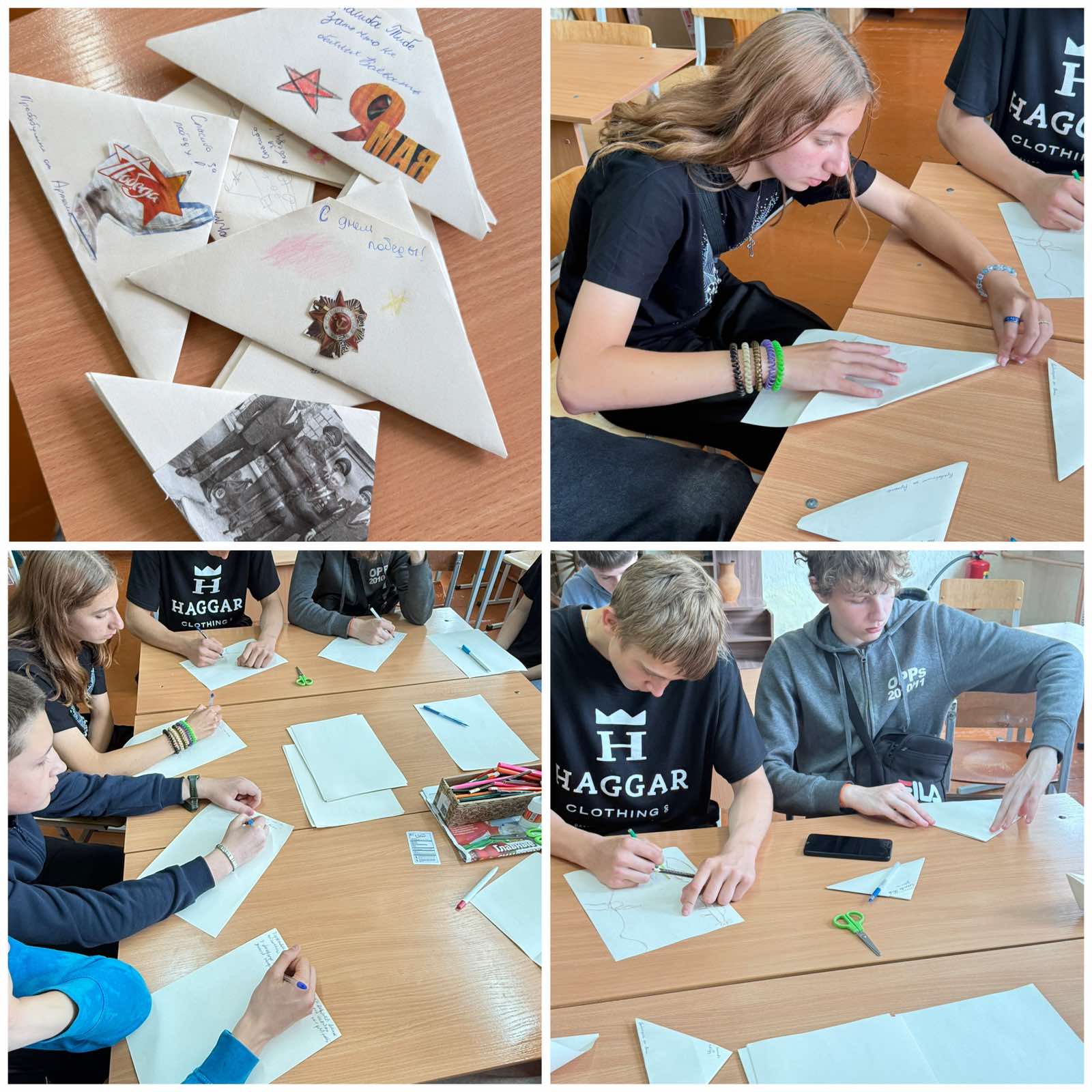 Каждый старался украсить свой конверт символами Победы или тёплыми пожеланиями. Внутри дети писали письма своим сверстниками, прошедшим войну ,или просто благодарили своих бабушек и дедушек.