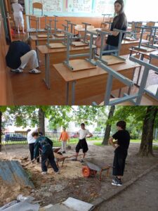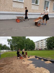 Трудовая деятельность воспитанников лагеря «Эколог»: работа в кабинетах, на спортивной площадке.