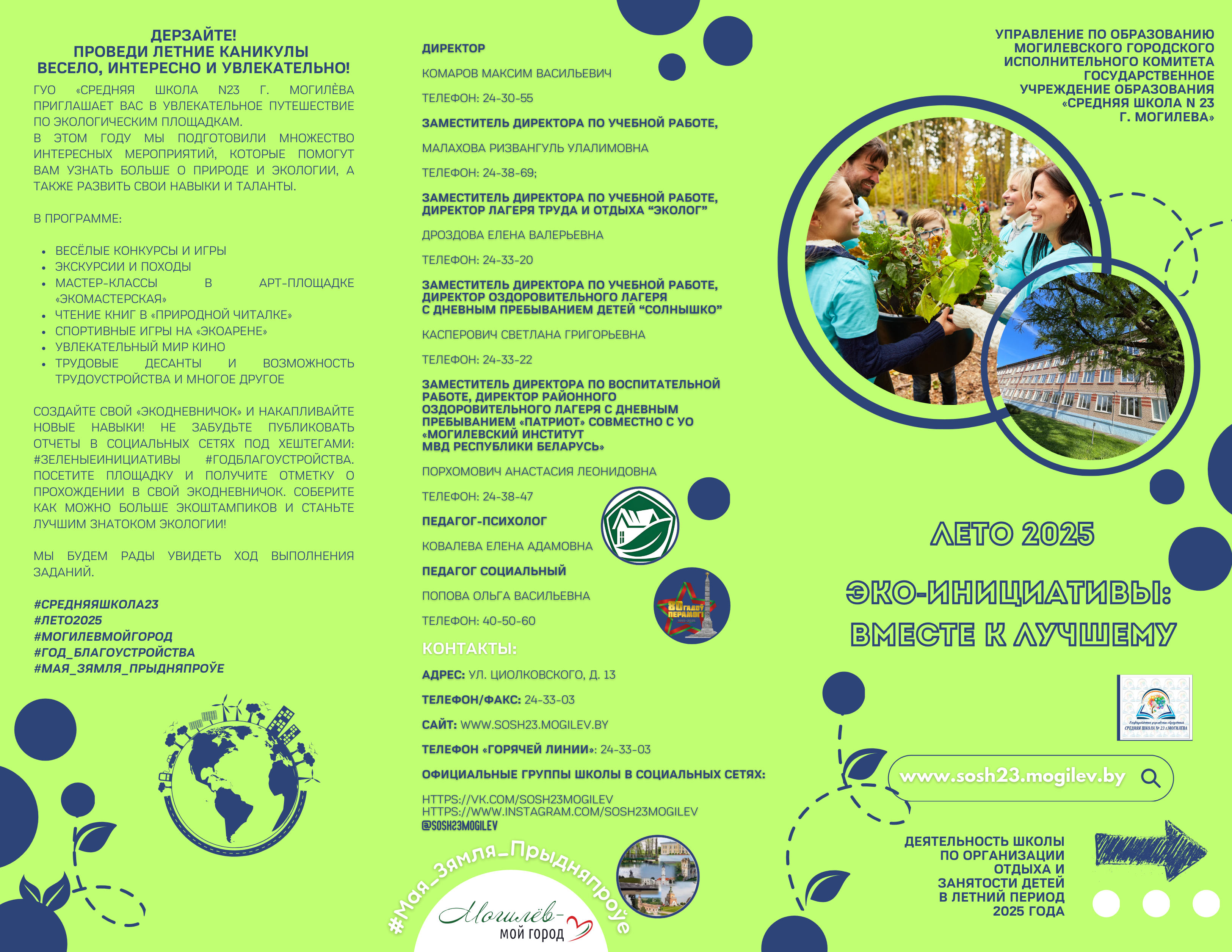Информация о трудовой занятости учащихся ГУО «Средняя школа №23 г.Могилева» в период летних каникул 2024/2025 учебного года (смотреть)