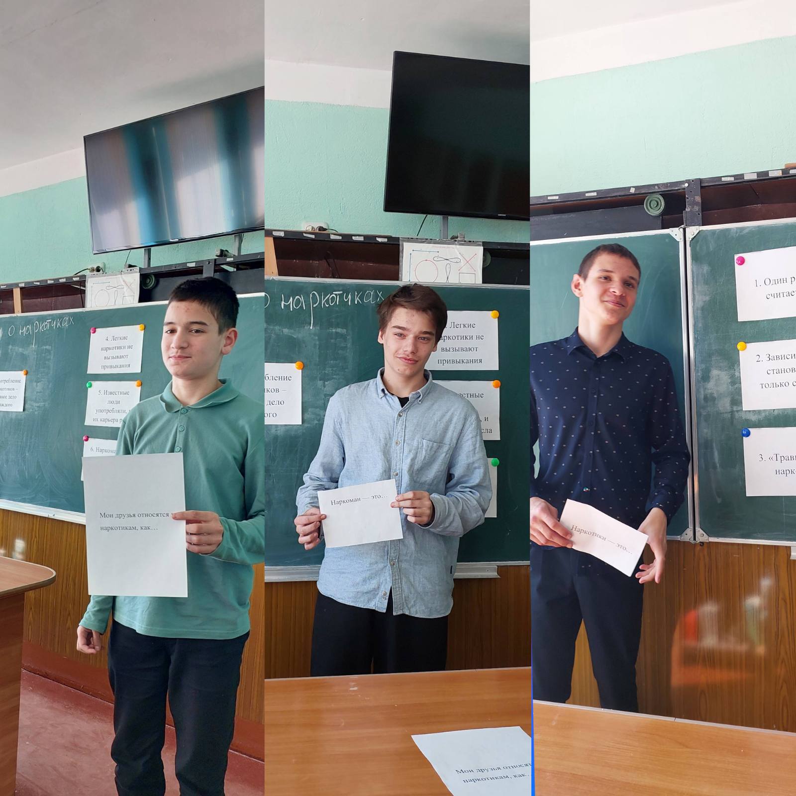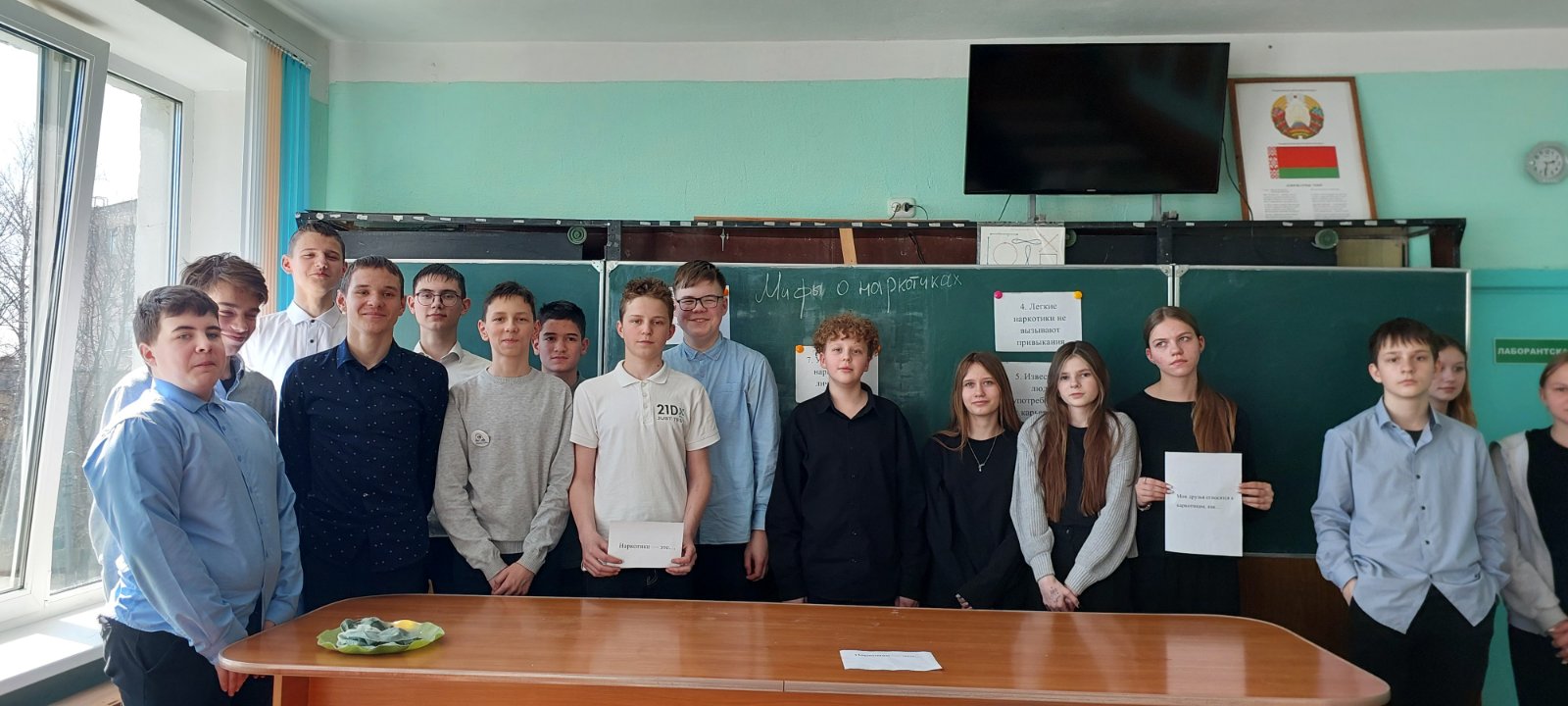 В рамках областной антинаркотической акции «Вместе» и Недели профилактики потребления психоактивных веществ, наркомании, преступлений связанных с незаконным оборотам наркотических средств в 8 «В» классе прошло внеклассное мероприятие «Мифы о наркотиках». Ребята высказывали свою позицию по данному вопросу, а также поговорили про наказание за распространение, хранение и потребление наркотических и других психоактивных веществ.