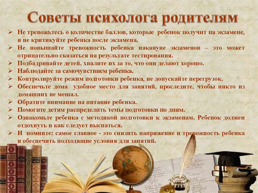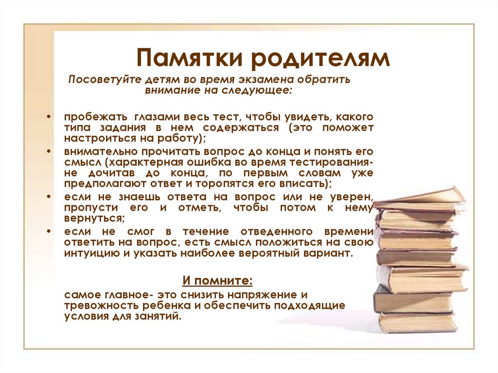 Памятки учащимся и родителям к экзаменам
