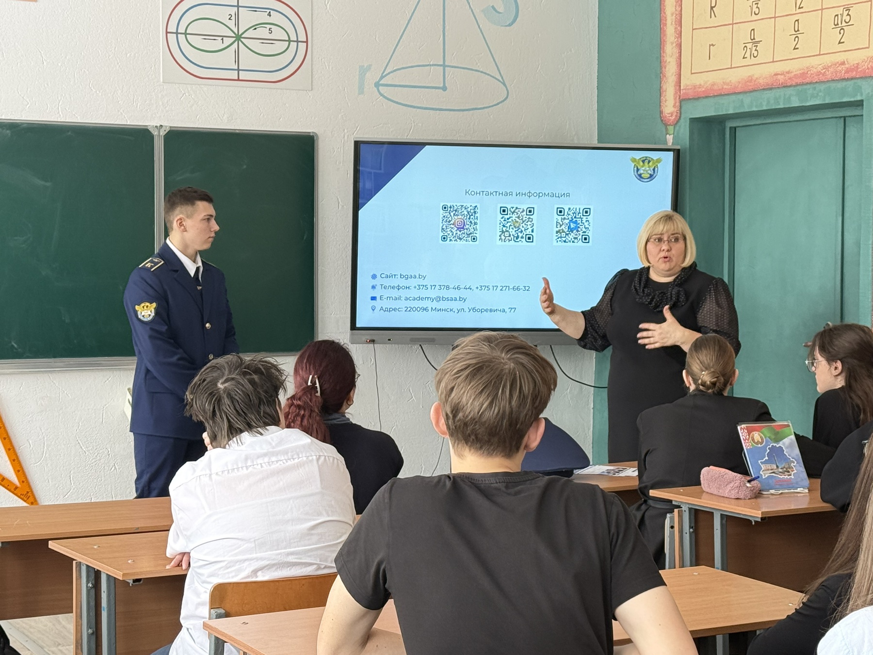 Сегодня учащиеся 11‑х классов приняли участие в профориентационной встрече с выпускником нашей школы. В настоящее время он успешно обучается в Белорусской государственной академии авиации (БГАА, ) и поделился с ребятами актуальными сведениями об учёбе в вузе.