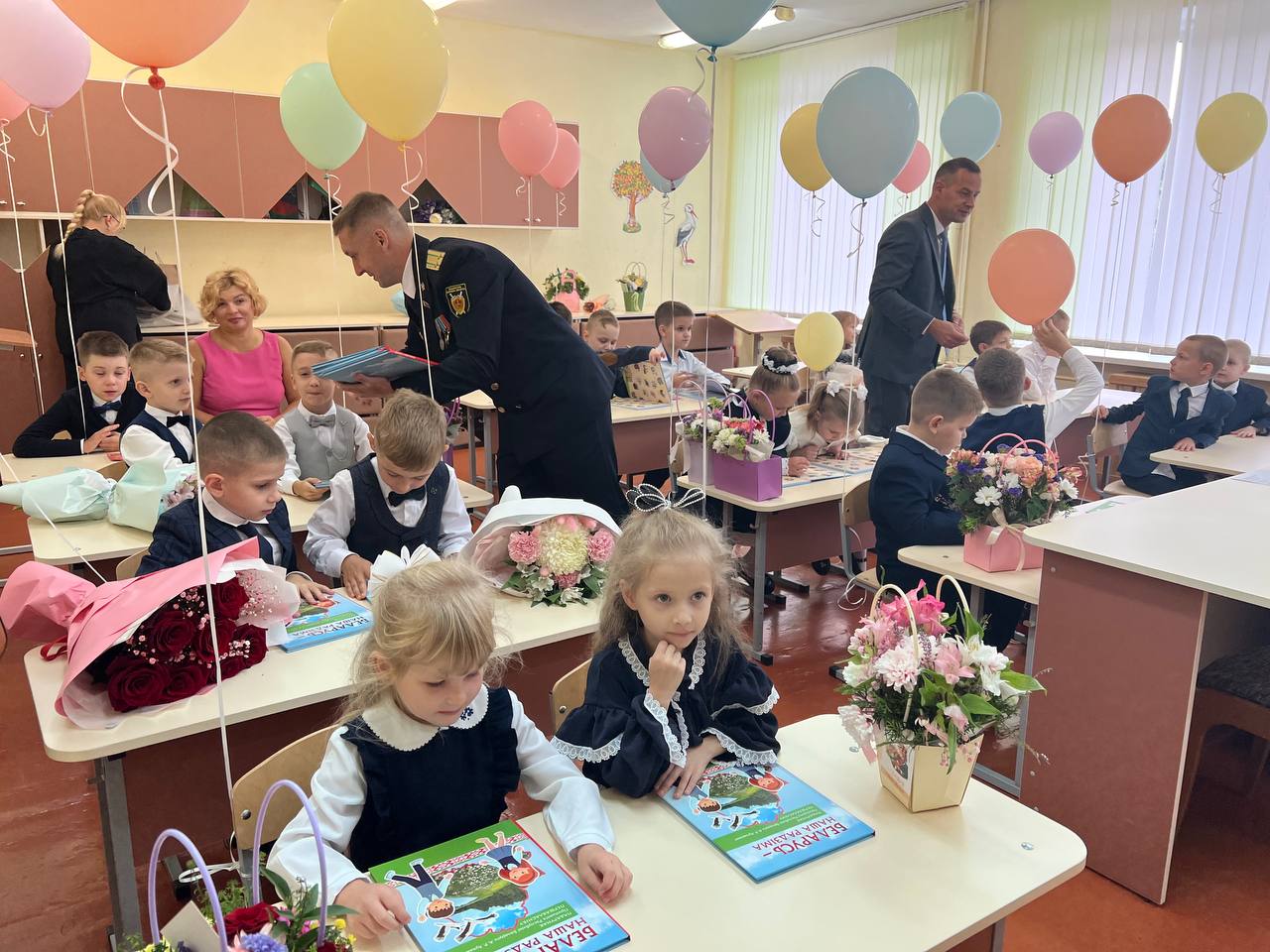 Важным моментом урока стало вручение подарков от Президента нашей страны Александра Григорьевича Лукашенко. Каждый первоклассник получил подарочную книгу «Беларусь — наша радзiма». Эта книга станет не только ценным источником знаний о нашей стране, но и символом уважения к ее истории и культуре.