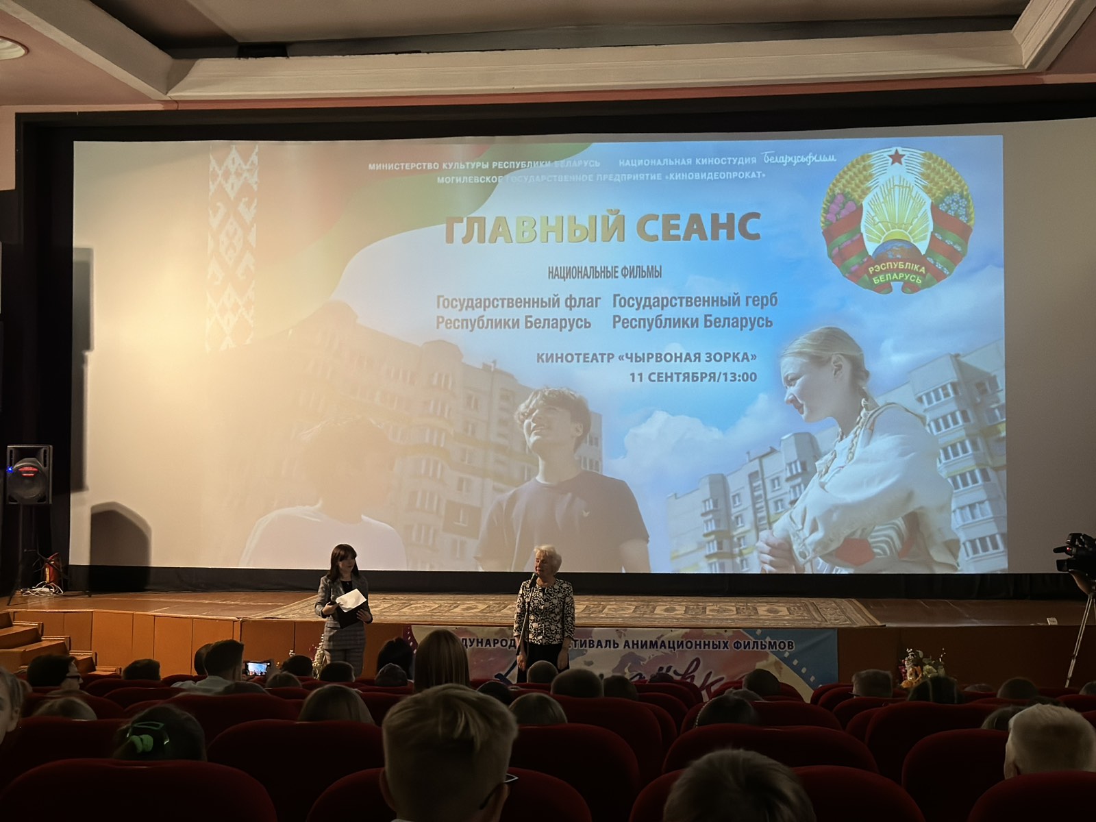 До показа перед ребятами выступила Зинаида Васильевна Пенькова, председатель постоянной комиссии Могилевского городского Совета депутатов по мандатам, депутатской этике, местному управлению и самоуправлению, законности и правопорядку, почетный гражданин г. Могилева.