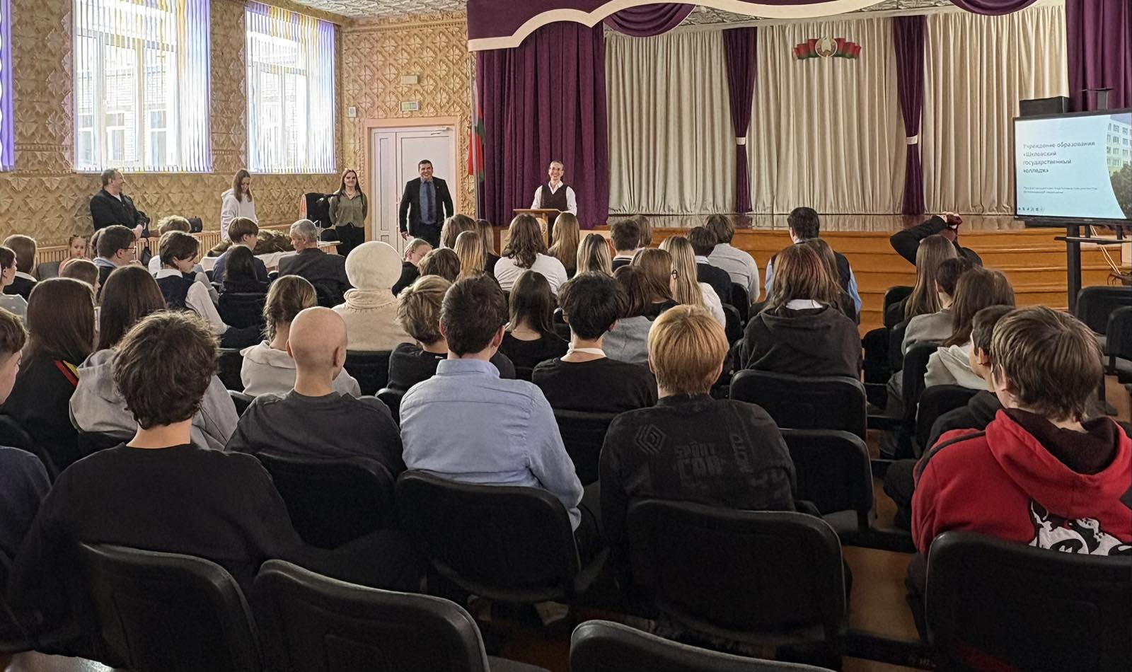 18 февраля в рамках профориентации учащихся 9 «В» класса посетили мероприятие организованное учреждением образования «Шкловский государственный колледж». Ребята узнали о специальностях учебного заведения и правилах приема документов для поступления в колледж. Также учащимися колледжа была организована развлекательная программа для школьников.