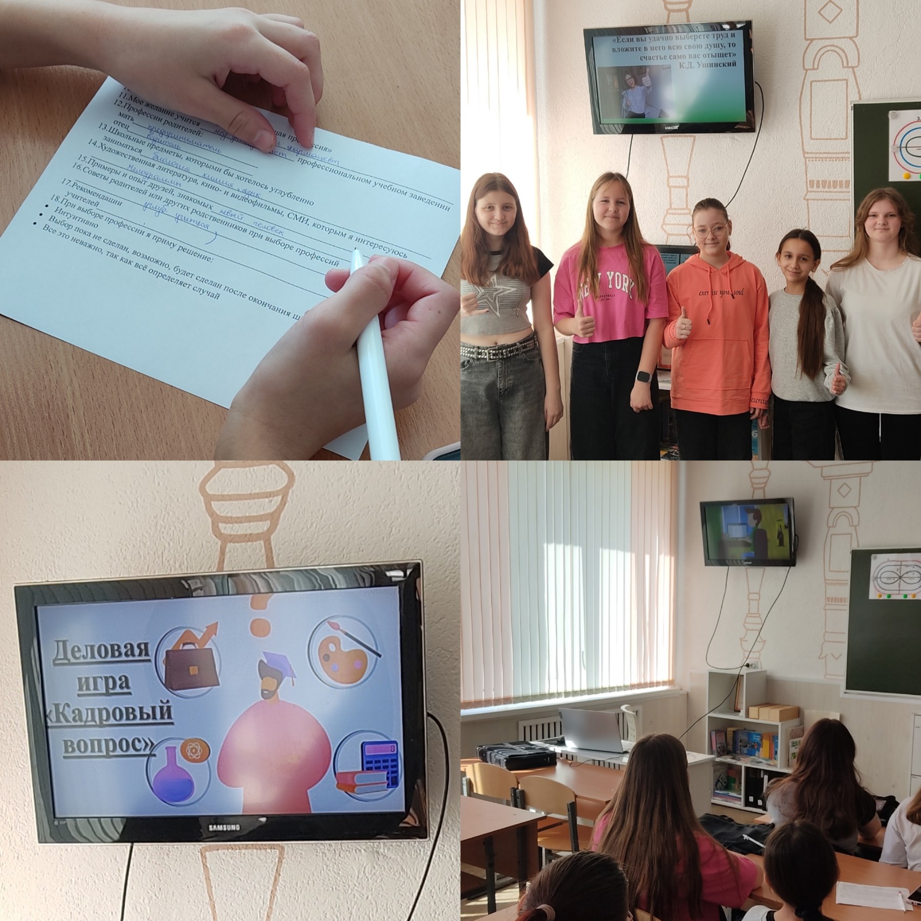 19.04.2025 в рамках субботней занятости в 6 «А» классе прошла деловая игра «Кадровый вопрос». В настоящее время а условиях рыночной экономики остро встаёт вопрос свободы выбора профессии. Расширение представлений о разнообразии профессий, формирование у учащихся представления о том, что любая профессия важна и нужна — главная задача игры. В процессе мероприятия ребята повысили свой уровень теоретических знаний о социальной значимости труда взрослых, узнали о разнообразии профессий в современном мире.