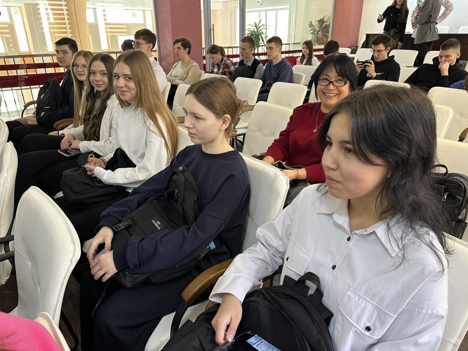 Также учащимся посчастливилось пообщаться с ректором вуза Юрием Викторовичем Машиным.