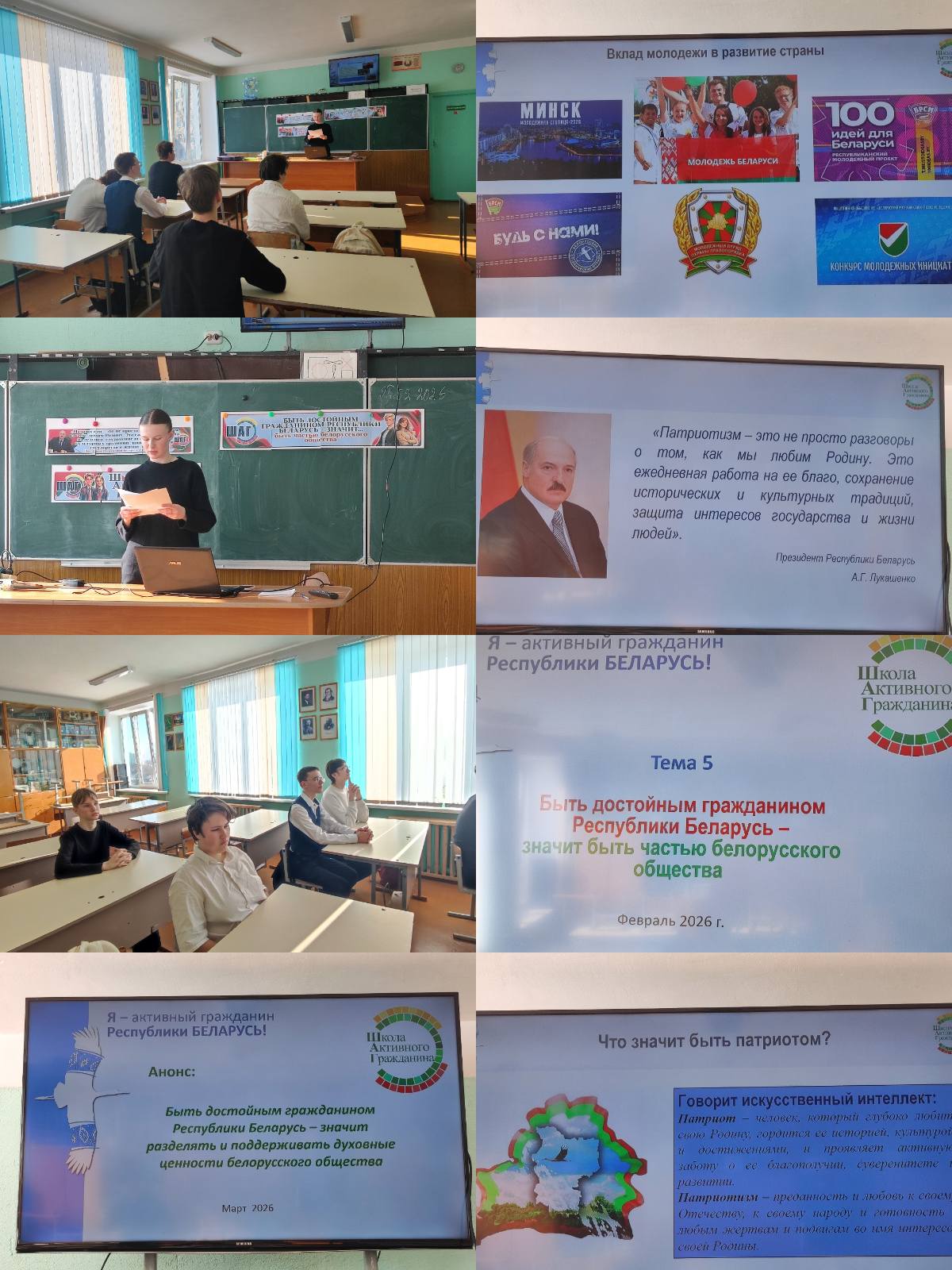 26 февраля в 11 Б классе прошел классный час по теме «Быть достойным гражданином Республики Беларусь — значит быть частью белорусского общества» в рамках ШАГ.