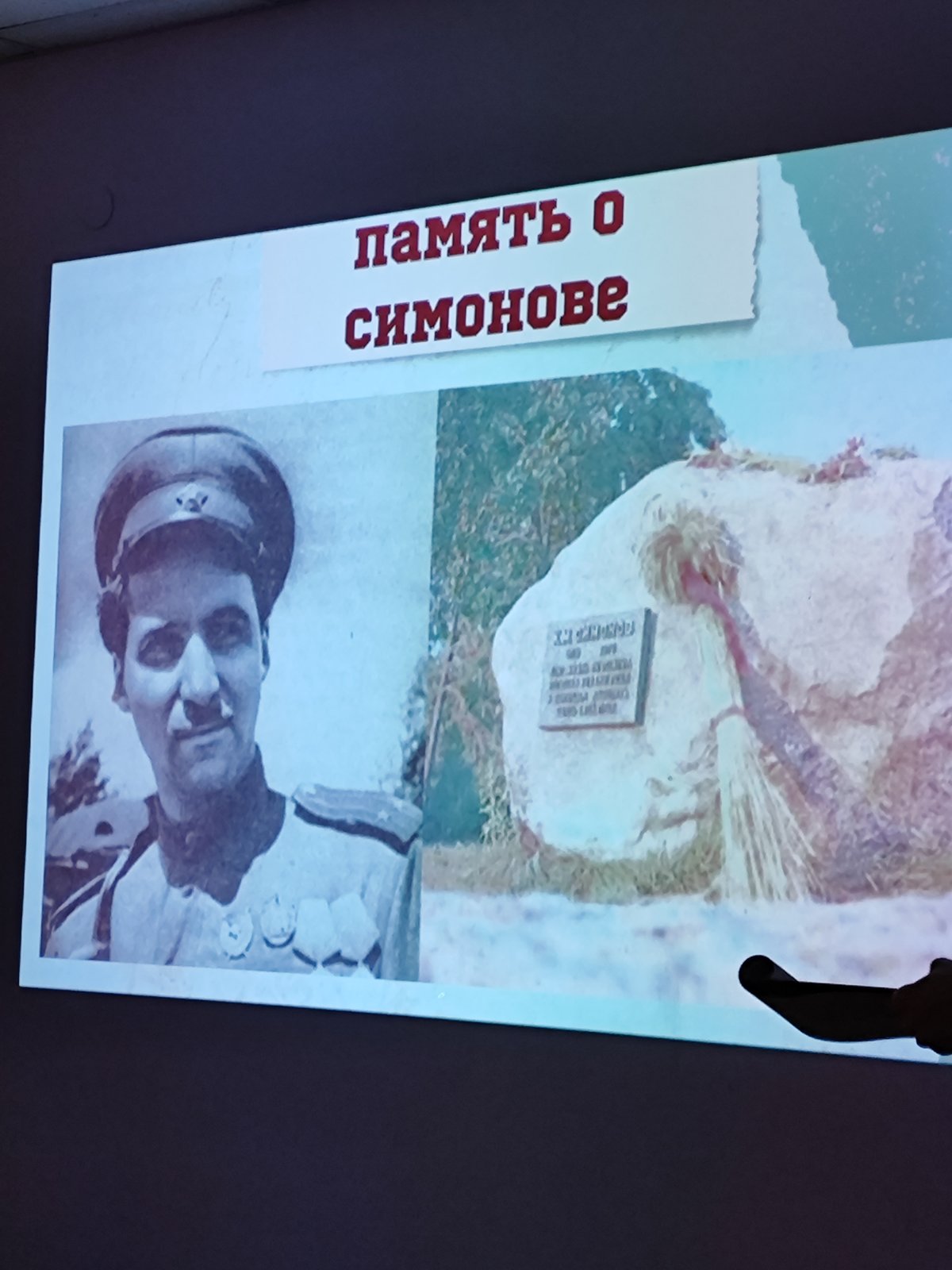 Ребята расширили и углубили знания о жизни и творчестве выдающегося советского писателя, поэта и публициста Константина Симонова, приобщились к лучшим произведениям писателя. Особое внимание уделялось его участию в Великой Отечественной войне в качестве военного корреспондента и тому, как этот личный, глубоко прочувствованный опыт нашёл отражение в его автобиографических произведениях и дневниковых записях.