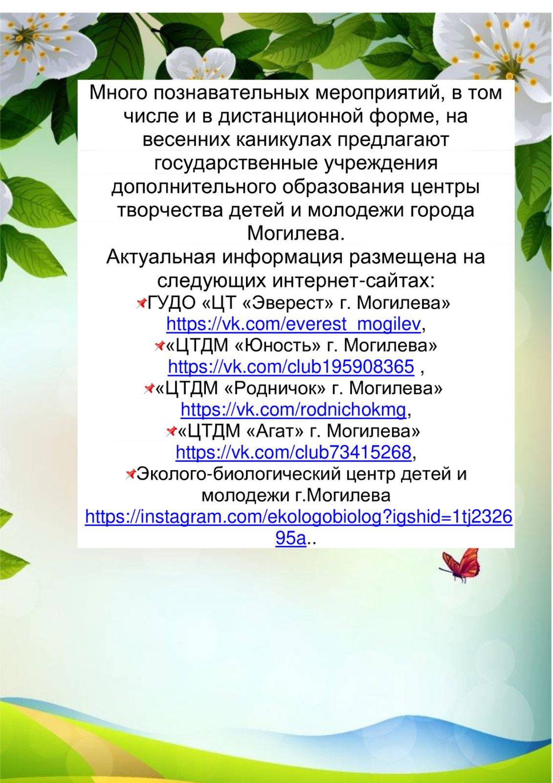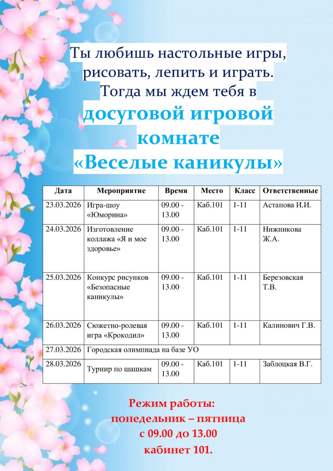 Весенние каникулы 2026!