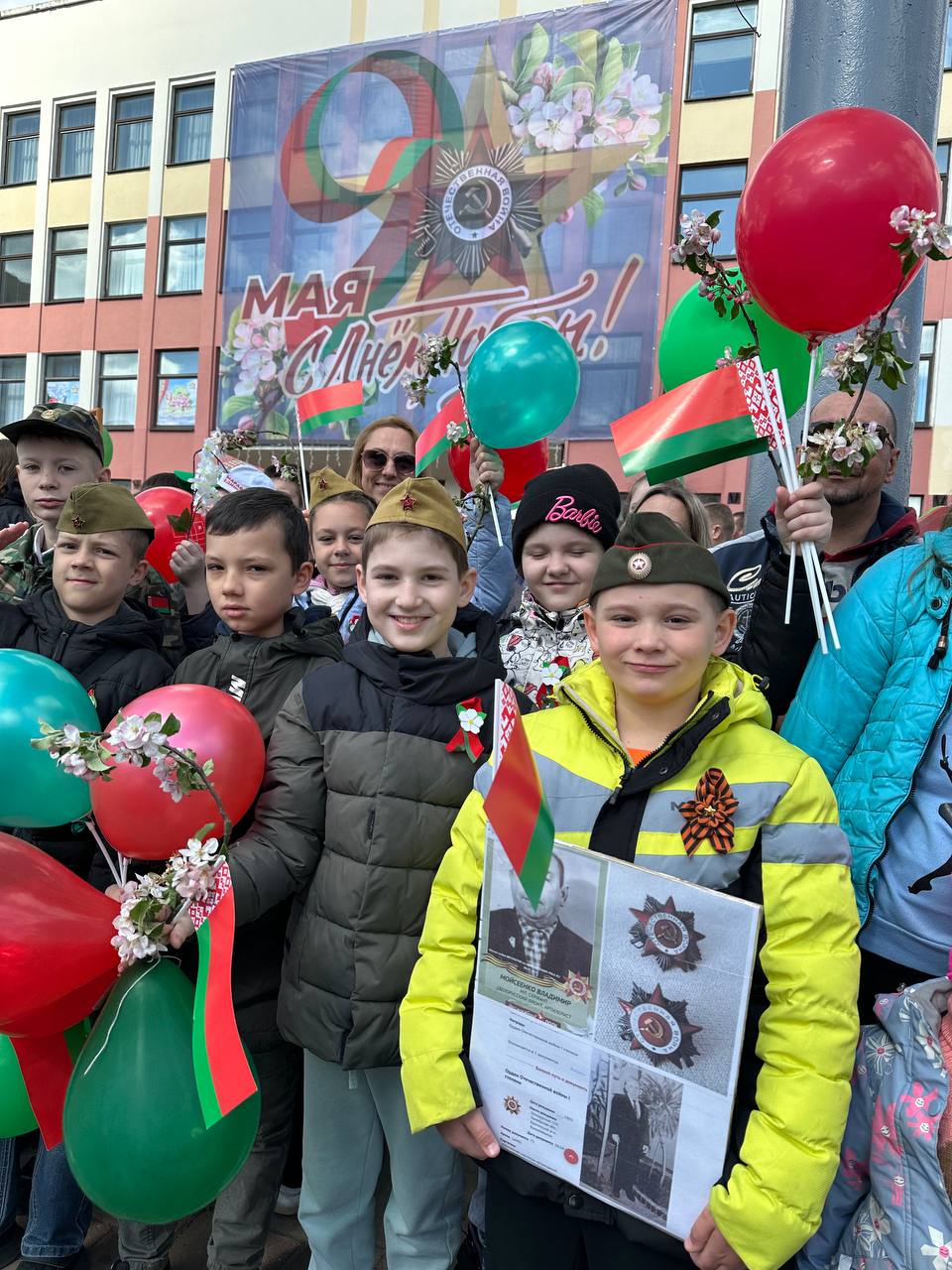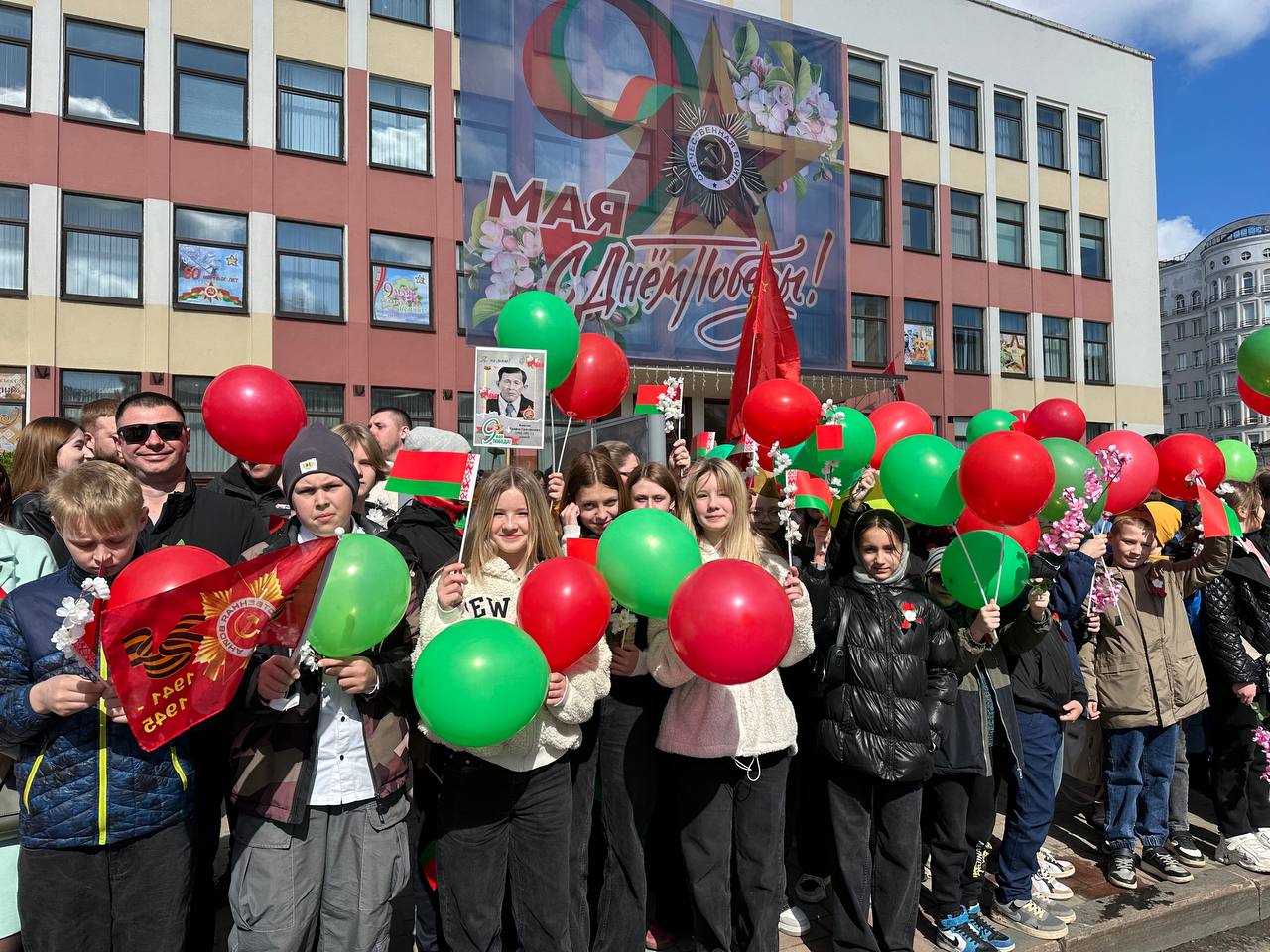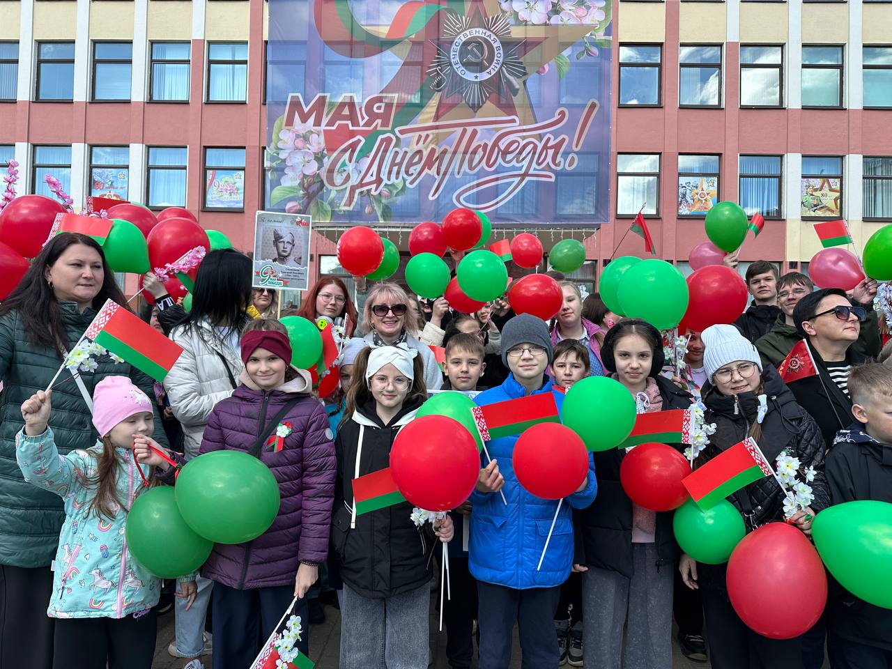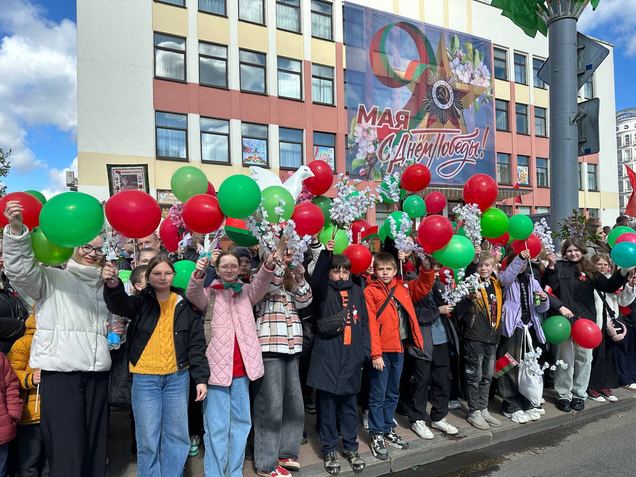 9 мая 2025 года пионеры, октябрят и активисты БРСМ,руководство и педагоги школы приняли участие в приветствии шествия-парада ветеранов Великой Отечественной войны, руководства области и города. Ребята скандировали: «С днём Победы! Ура!».