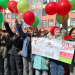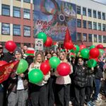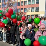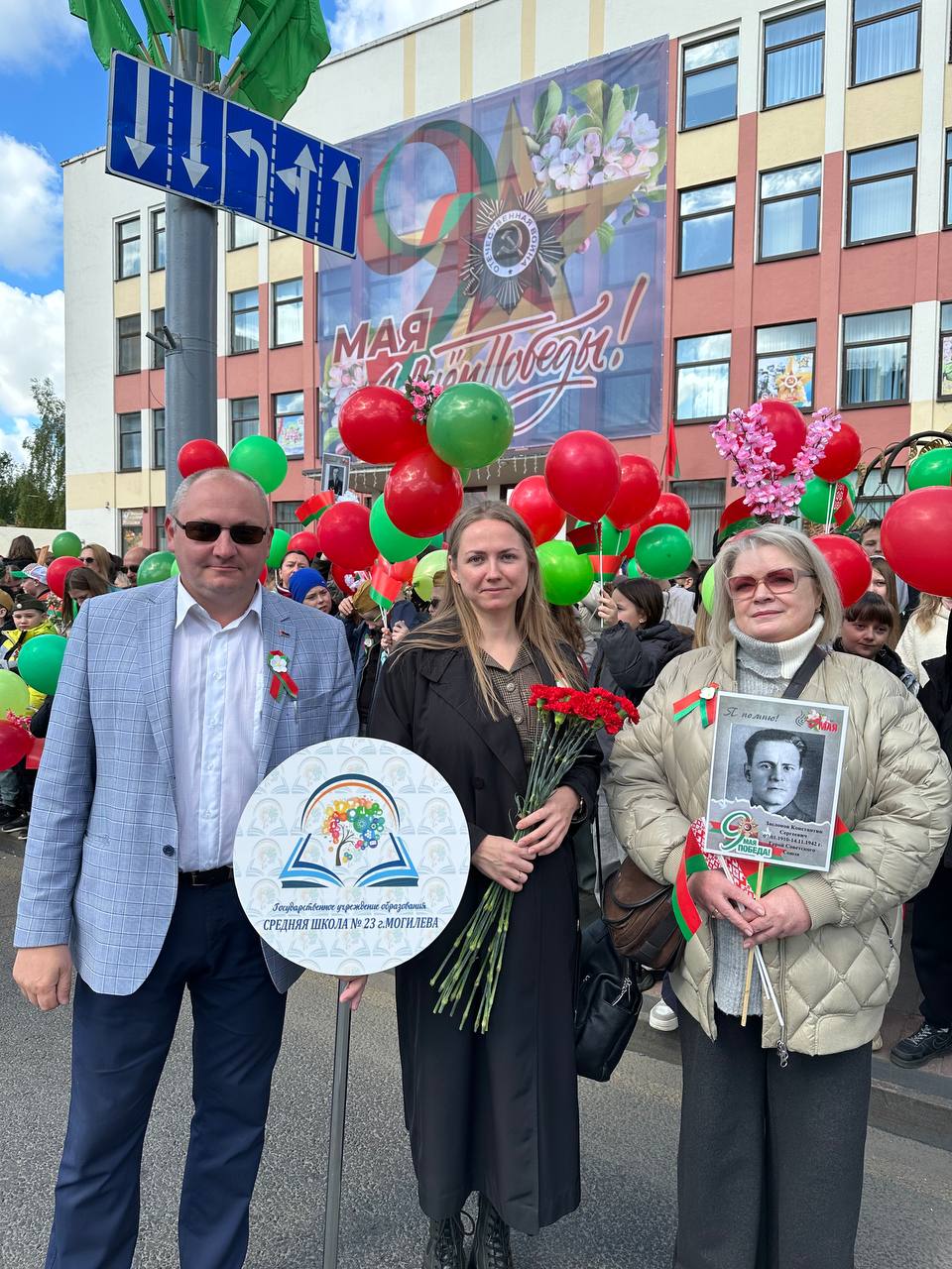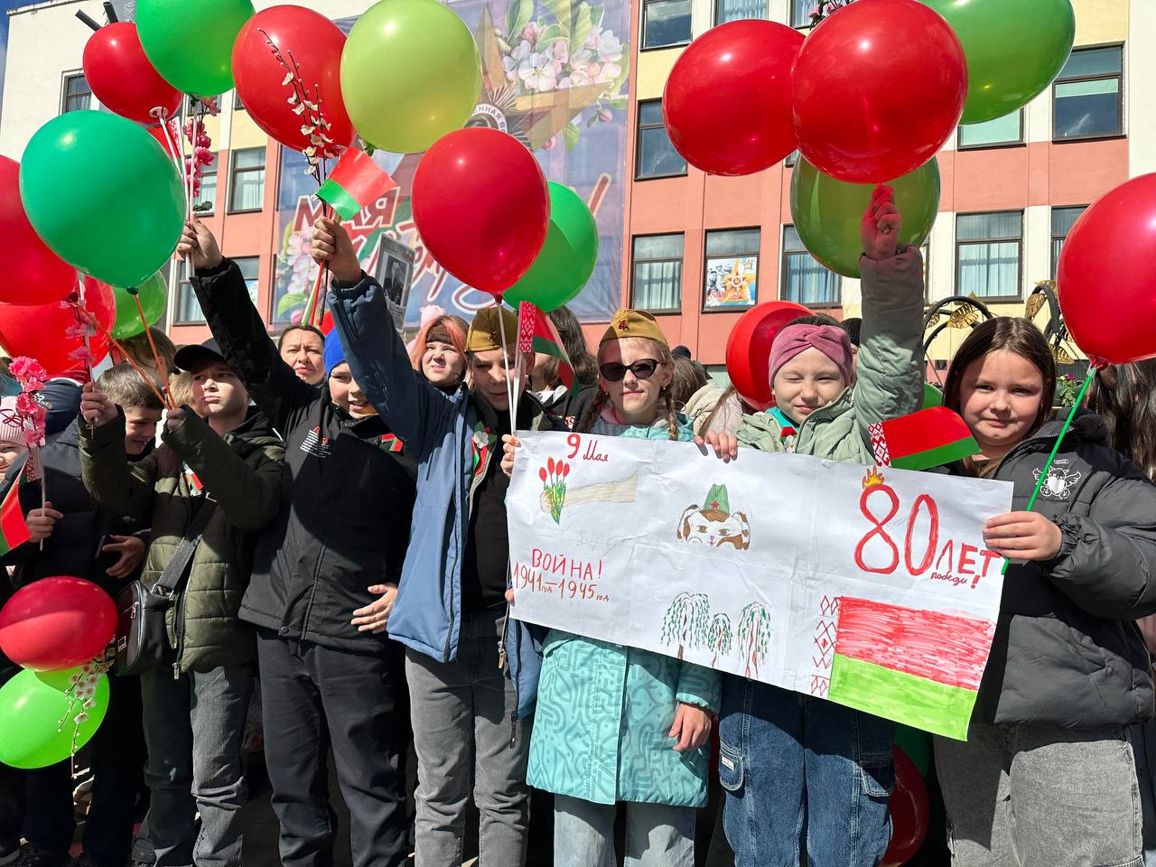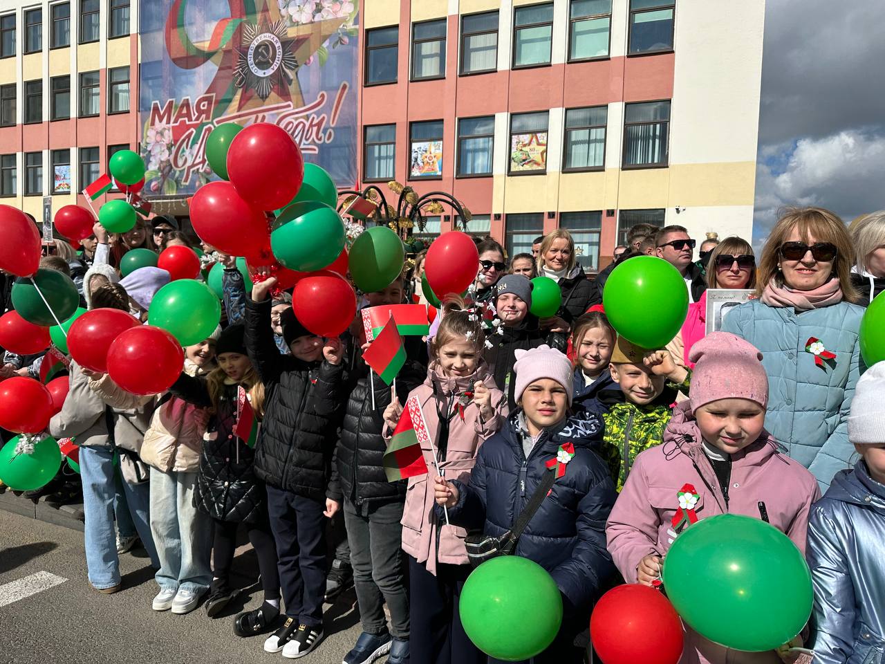 9 мая 2025 года пионеры, октябрят и активисты БРСМ,руководство и педагоги школы приняли участие в приветствии шествия-парада ветеранов Великой Отечественной войны, руководства области и города. Ребята скандировали: «С днём Победы! Ура!».