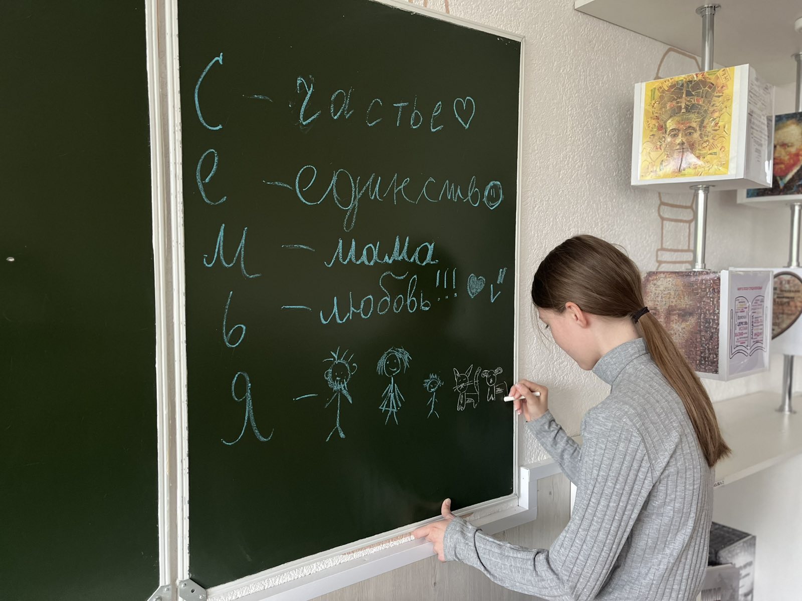 В завершение занятия они смотрели видео о героях, узнали имена защитников, в честь которых названы улицы нашего города. А также выполнили задание «Закончи предложение: Герой это —…», под песню «Закаты алые».