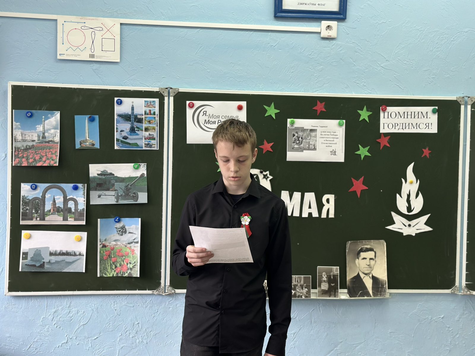 15 мая в рамках цикла тематических занятий «Я. Моя семья. моя Родина» в 9 «А» классе прошел классный час «Помним.Гордимся!»