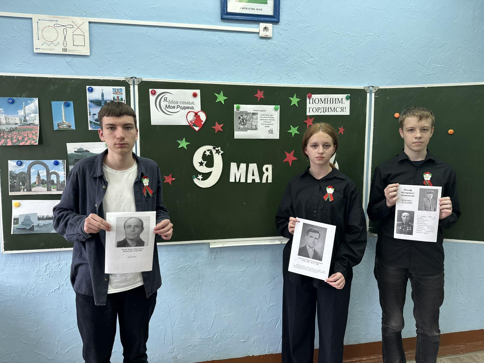 15 мая в рамках цикла тематических занятий «Я. Моя семья. моя Родина» в 9 «А» классе прошел классный час «Помним.Гордимся!». Во время классного часа ребята вспомнили исторические события Великой Отечественной войны, обсудили важность сохранения исторических памятников погибшим, а также важность поддержания патриотических акций. Также ребята рассказали своим одноклассникам о своих прадедах-участниках-героях Великой Отечественной войны. Память погибших почтили минутой молчания: никто не забыт, ничто не забыто.