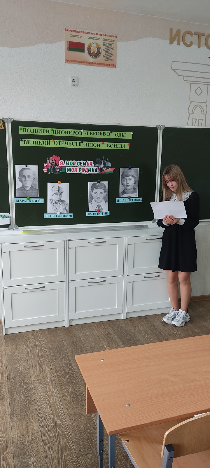 16.05.2025 в рамках проекта «Я. Моя семья. Моя родина» в 6А классе прошло занятие о пионерах-героях Великой Отечественной войны!