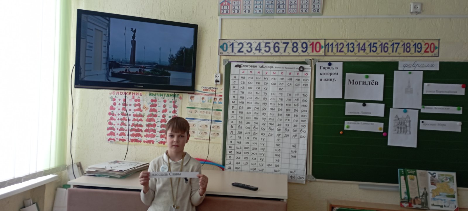 В рамках шестого школьного дня в 1 «Б» классе прошло мероприятие » Виртуальная экскурсия: город, в котором я живу».