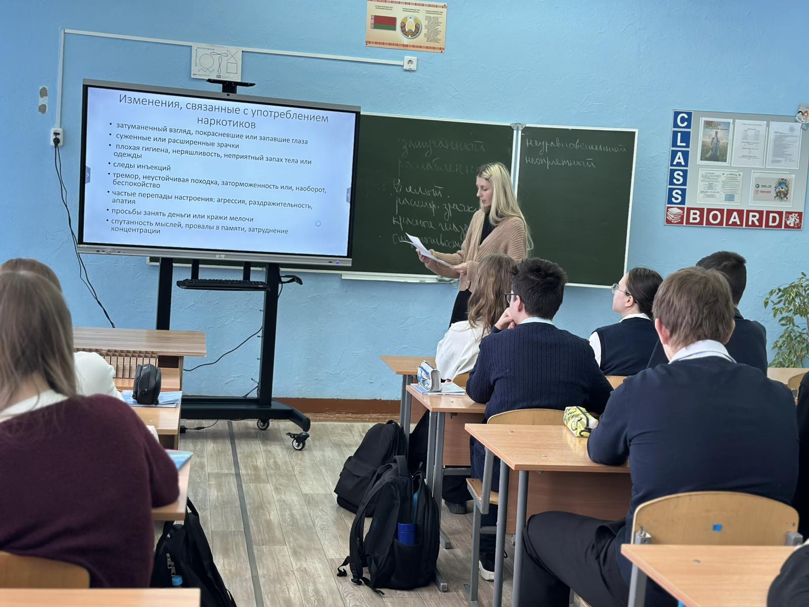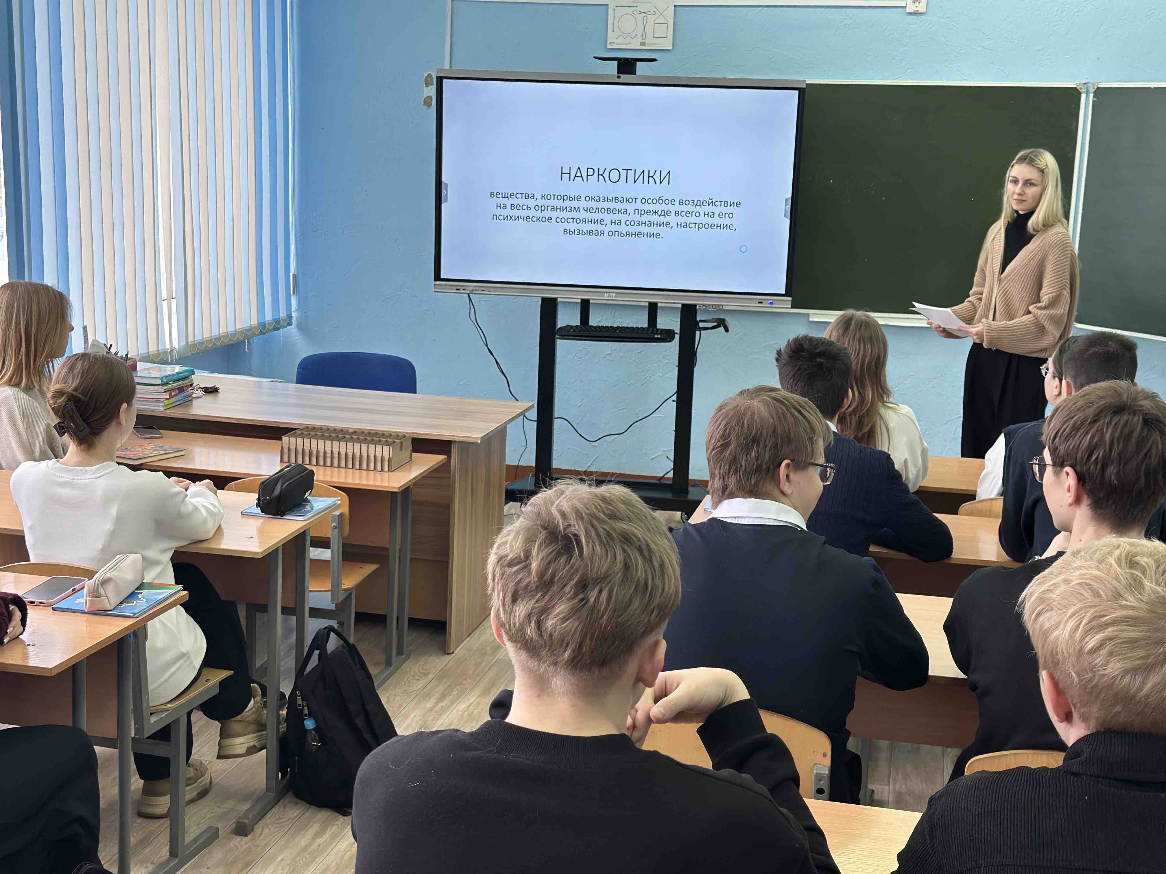 В рамках антинаркотической акции «Вместе» в 10 «А» классе прошел классный час, направленный на профилактику правонарушений несовершеннолетними в сфере незаконного оборота наркотических средств. Старшеклассники обсудили последствия употребления и распространения запрещённых веществ, разобрали возможные риски и правовые последствия.
