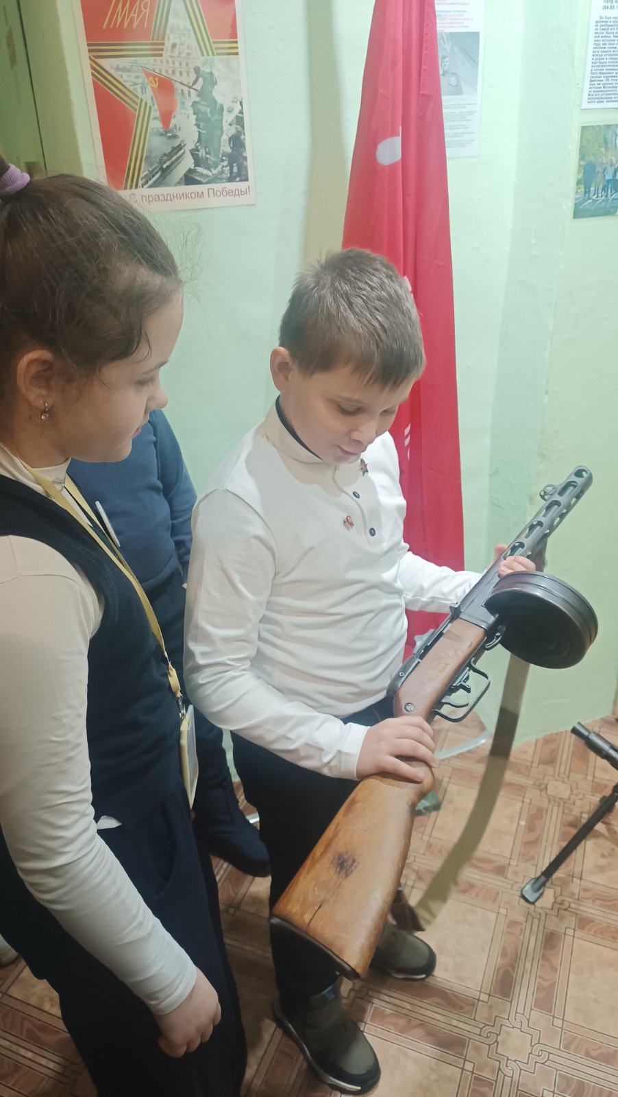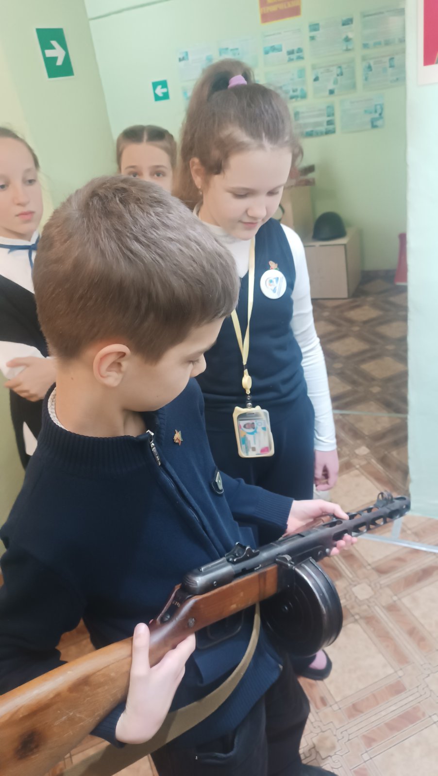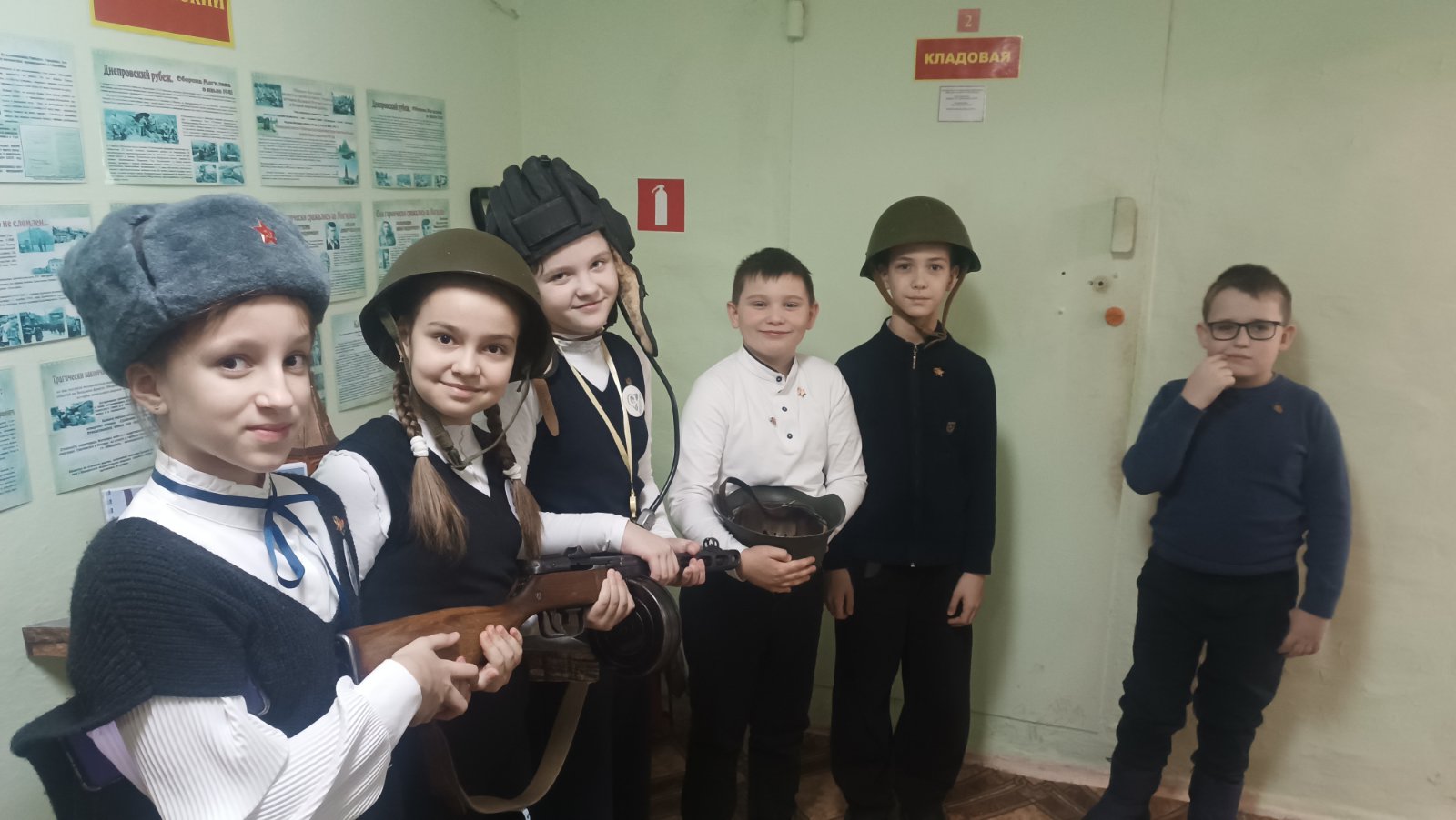 Учащиеся 4а класса посетили выставочную экспозицию, посвященную Великой Отечественной Войне в ГУО СШ 21. Ознакомились с экспонатами и их историей, примерили военные головные уборы середины прошлого века и подержали в руках настоящее «оружие Победы»— пистолет-пулемет Шпагина (ППШ).