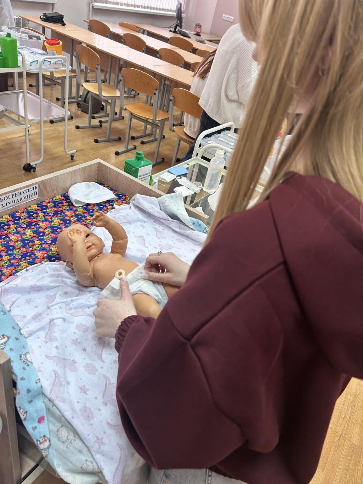 Особый интерес вызвали практические занятия, на которых девочек учили пеленать младенцев, проводить забор крови, делать уколы внутривенно и внутримышечно.
