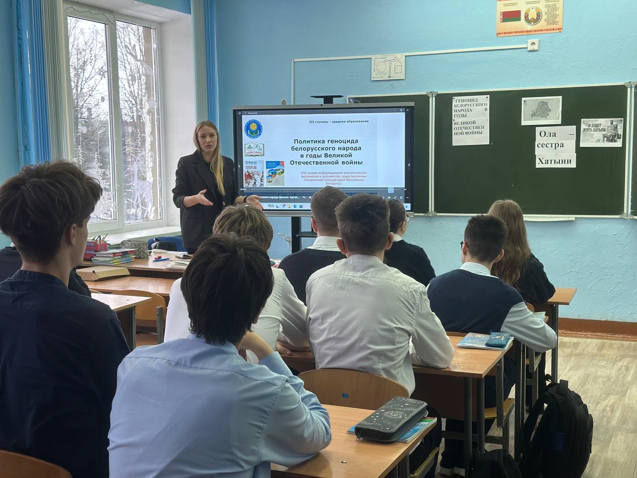 Беларусь первой приняла на себя удар врага. Но захватчики пришли на нашу землю не просто воевать — согласно нацистскому плану «Ост», они пришли истреблять. В ходе обсуждения учащиеся узнали о системной политике геноцида: массовом уничтожении мирного населения, создании гетто и концентрационных лагерей, угоне молодежи в немецкое рабство.