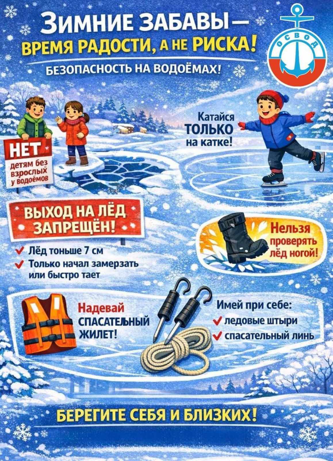 ❄️🎄☃️Зимние забавы — время радости, а не риска! ОСВОД напоминает о безопасности на водоёмах